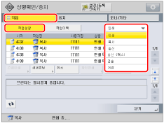 작업 종류에서 [인쇄] 또는 [복사]를 선택한 경우 [현재 복사작업까지 인쇄]를 설정할 수 있습니다. 이 버튼은 현재 일련의 복사/인쇄 작업이 완료된 후 선택된 복사/인쇄 작업을 취소합니다.