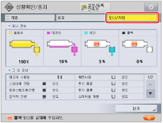 토너 및 스테이플 잔량과 같이 소모품 상황을 확인할 수 있습니다. 저장된 데이터의 백업 상황도 확인할 수 있습니다.