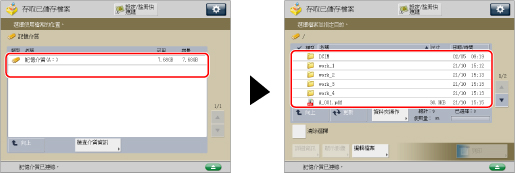 再次選擇該文件可以取消選擇。 若記憶介質中儲存了兩個或更多個檔案,可以按[名稱]或[日期/時間]對檔案清單進行排序。 對檔案排序後,若關閉「檔案選擇」螢幕,則再次開啟「檔案選擇」螢幕時檔案處於未排序狀態。 若選擇檔案後按[名稱]或[日期/時間],則該檔案處於未選中狀態並顯示檔案清單的開頭。 |