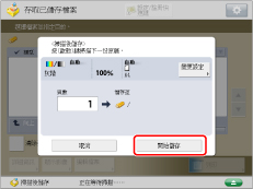 若顯示以下螢幕,最後一批原稿掃描結束後,請按[開始儲存]。