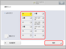 若輸錯數值,請按 →輸入正確的數值。要選擇尺寸按鈕([S1]到[S5])中儲存的已註冊紙張尺寸,必須事先在尺寸按鈕中儲存非標準紙張尺寸。有關儲存非標準紙張尺寸的說明,請參閱「註冊/編輯/刪除自訂紙張尺寸」。 |