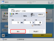 若在本機器正在影印或等候影印時出現的快顯螢幕上按[取消],則可以取消正在影印的工作或等待影印的已掃描原稿的最後一份工作。 |