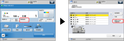 若「選擇紙張」螢幕上未顯示所需的紙張類型,請按[詳細設定],並在「詳細設定」螢幕上選擇所需的紙張類型。