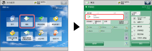 若「限制新接收者」中的[傳真]設定為「開啟」,則不能輸入新接收者。在這種情況下,透過使用「本機通訊錄」、「遠端通訊錄」、「LDAP伺服器」或「單鍵按鈕」選擇儲存的接收者。(請參閱「限制傳送至新位址」) |
