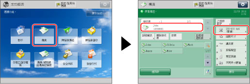 →[傳真]→指定所需的接收者→按解析度按鈕。