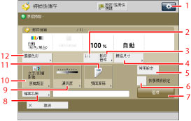 10 | [原稿類型] 按下可以選擇要掃描原稿的類型(印刷影像、相片列印輸出、文字、地圖或彩色影印)。 |