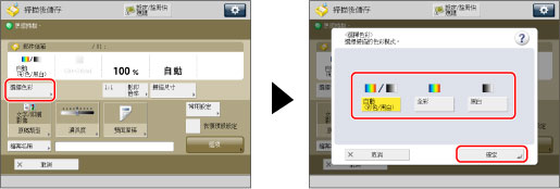 若以「全彩」模式掃描黑白原稿,將視作彩色掃描。 可以透過變更預設掃描設定,將所需的色彩模式註冊為預設設定。(請參閱「指定掃描後儲存設定」) |