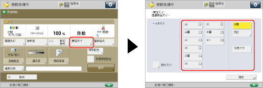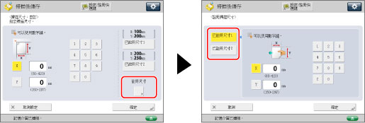 按[註冊尺寸]→選擇[已註冊尺寸1]或[已註冊尺寸2]。