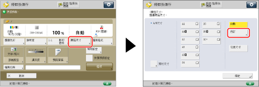 按[自訂]→選擇[已註冊尺寸1]或[已註冊尺寸2]。