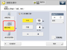 按[中央]和[四邊]→按[-]或[+]設定所需的「消框」寬度。