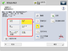 若以PDF、XPS或OOXML格式傳送,可以選擇附加設定。有關設定PDF、XPS或OOXML各類型的說明,請參閱以下內容︰ [輪廓]: 輪廓 [壓縮]: 壓縮PDF或XPS [限制色彩]: 限制色彩PDF [OCR(可搜尋文字)]: 可搜尋PDF/XPS/OOXML [添加數位簽章]: 為PDF或XPS添加數位簽章 [加密]: 加密PDF檔案 [套用策略]: 應用策略 |