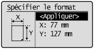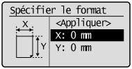 ] ou sur [ ] pour sélectionner la dimension X, puis appuyer sur [OK].![]() |