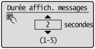 ] pour préciser la durée d'affichage des messages à l'écran, puis appuyer sur [OK].