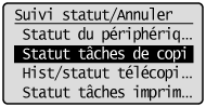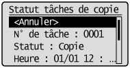 ] pour indiquer <Statut tâches de copie>, puis appuyer sur [OK].