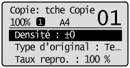 Si vous choisissez une autre option que <Texte> pour <Type d'original>, l'option <Type d'original> devient <Texte> lorsque vous sélectionnez <Densité auto>. |