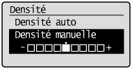 ] ou sur [ ] pour régler l'option <Densité manuelle>, lorsque la valeur <Densité auto> ou <Densité manuelle> est sélectionnée. |