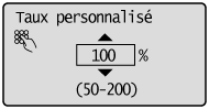 Vous pouvez agrandir ou réduire les copies pour leur donner la taille de votre choix. Il vous est possible de définir un rapport de copie (de 50 % à 200 %) par incréments de 1 %.