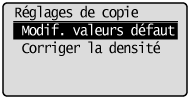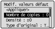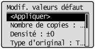 ] pour indiquer <Modif. valeurs défaut>, puis appuyer sur [OK].