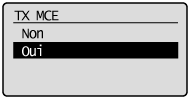 ] pour sélectionner <TX MCE>, puis appuyer sur [OK].