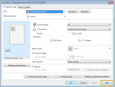 L'affichage peut varier en fonction du système d'exploitation, ainsi que du type et de la version du pilote d'impression.