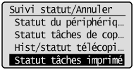 ] pour sélectionner <Statut tâches imprimées>, puis appuyer sur [OK].