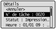 ] ou [ ] pour sélectionner <Oui>, puis appuyer sur [OK].La tâche d'impression est alors annulée. ![]() |
