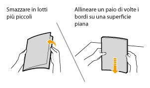 Regolare le guide del documento in base alla larghezza del foglio senza spazi.Se le guide dei documenti sono troppo larghe o troppo strette, la carta potrebbe essere caricata male o incepparsi.