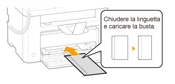 Caricare le buste con il lato anteriore (lato senza la colla) rivolto verso l'alto nel cassetto della carta, come illustrato di seguito.