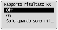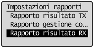 ] per selezionare <Rapporto risultato RX>, quindi premere [OK].