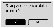 ] per selezionare <Elenco dati utente>, quindi premere [OK].