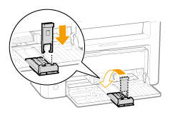 Agganciare la guida per formati di carta piccoli alla guida della carta e abbassarla come mostrato di seguito.