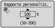 È possibile ingrandire o ridurre le copie al formato desiderato. È possibile impostare un rapporto di copia (da 50% a 200%) aumentando dell'1% alla volta.