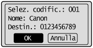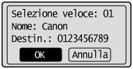 Se <Conferma TX selez. veloce/selez. codif.> è impostato su <On> e la destinazione viene specificata con i tasti di selezione veloce o con i codici di selezione codificata, la schermata viene visualizzata.