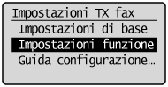 ] per selezionare <Impostazioni TX fax>, quindi premere [OK].
