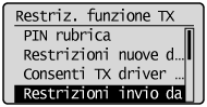 ] per selezionare <Restrizioni funzione TX>, quindi premere [OK].