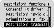 ] per selezionare <Restrizioni funzione TX>, quindi premere [OK].