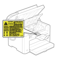 Entfernen Sie nicht den an der Lasereinheit im Inneren des Geräts angebrachten Warnaufkleber.