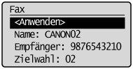 ] oder [ ], um <Empfänger> hervorzuheben, und drücken Sie dann [OK].![]() |