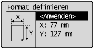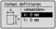 ] oder [ ], um das Format anzugeben, und drücken Sie dann [OK].Sie können auch mit den numerischen Tasten Werte eingeben.