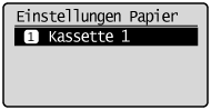 ], um <Kassette 1> hervorzuheben, und drücken Sie dann [OK].