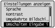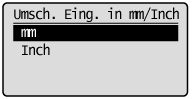 ], um <Umschalten Eingabe in mm/Inch> hervorzuheben, und drücken Sie dann [OK].