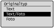 Wenn <Dichte> auf <Auto Dichte> gesetzt wird, ändert sich <Dichte> in <Manuelle Dichte> wenn Sie <Text/Foto> oder <Foto> auswählen.