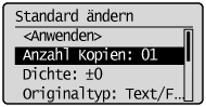 Die Standardwerte für das Kopieren sind die Funktionen, die angewendet werden, wenn [