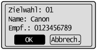 Wenn <Bestätigung Zielwahl/Kodierte Wahl SE> auf <Ein> gesetzt ist und der Empfänger über die Zielwahltasten oder die Codes für die codierte Wahl angegeben wurde, wird der Bildschirm angezeigt.