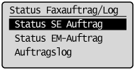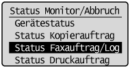 ], um <Status Faxauftrag/Log> hervorzuheben, und drücken Sie dann [OK].