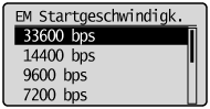 ], um <EM Startgeschwindigkeit> hervorzuheben, und drücken Sie dann [OK].