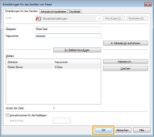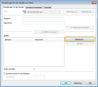 Nähere Informationen zum Speichern von Empfängern und zur Verwendung des Adressbuchs siehe "Anzeigen der Online-Hilfe (PC-Fax)".)