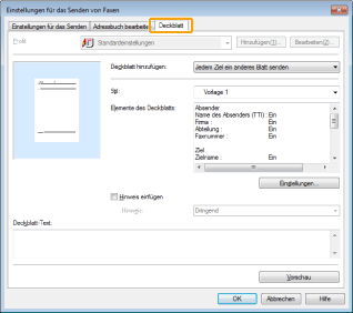 Nähere Informationen zum Mitsenden von Deckblättern finden Sie unter "Anzeigen der Online-Hilfe (PC-Fax)".