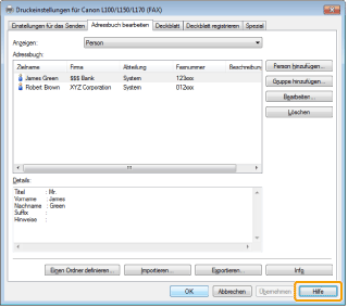Zeigen Sie die Online-Hilfe durch Klicken auf [Hilfe] auf dem Faxtreiber-Bildschirm an.