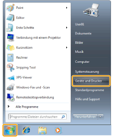 Unter Windows XP Professional klicken Sie auf [Start] -> [Drucker und Faxgeräte].